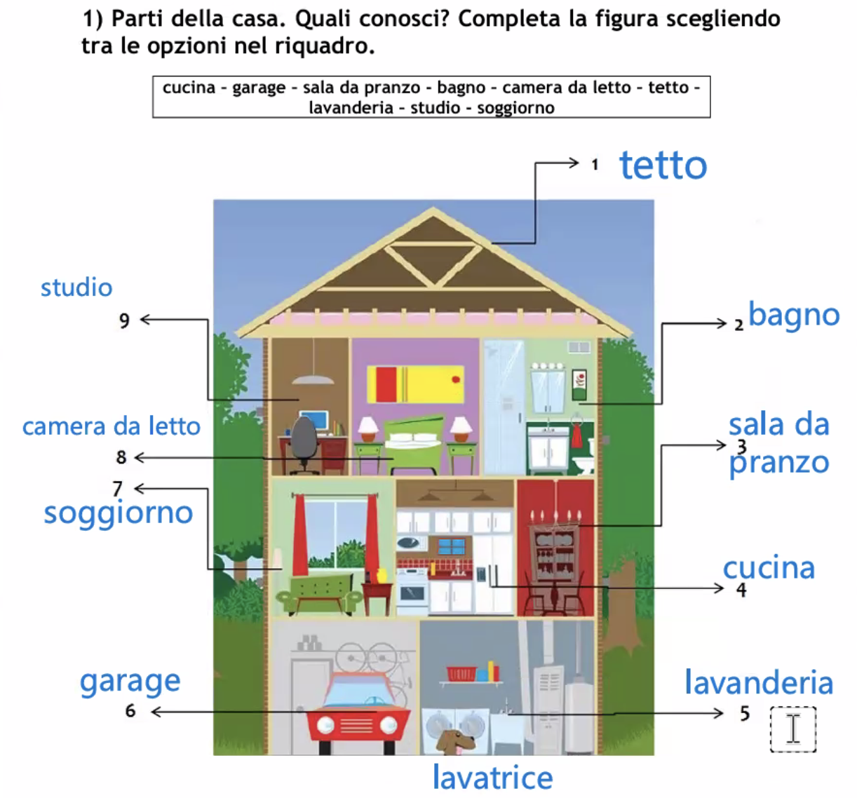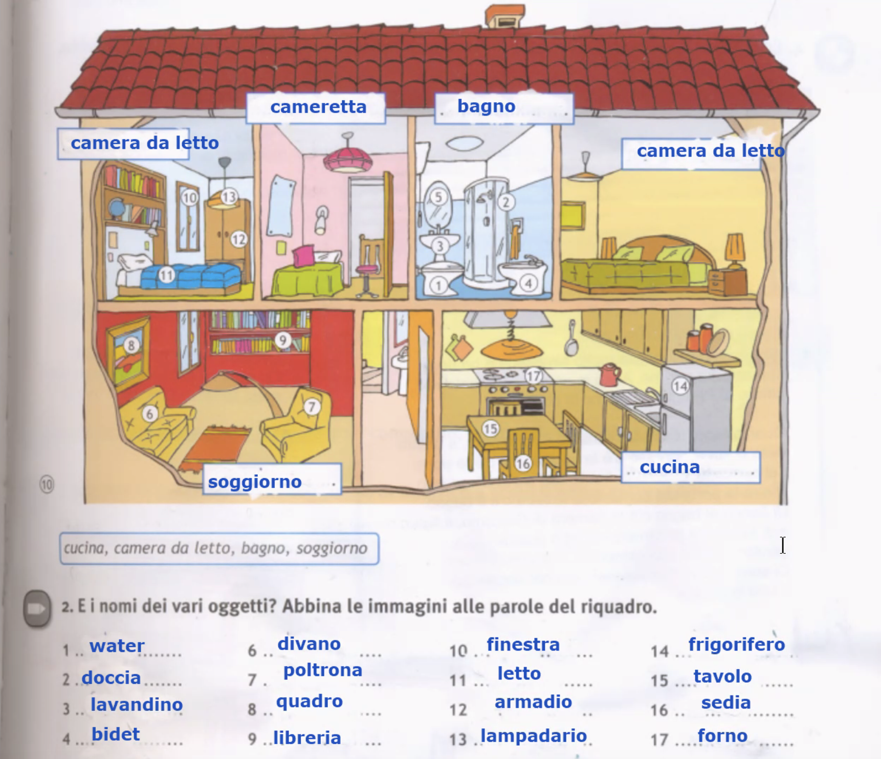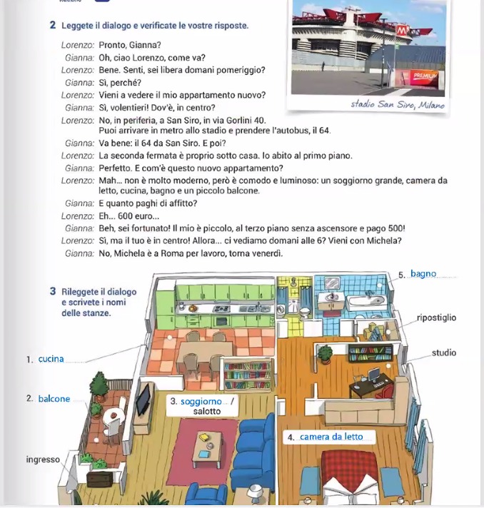 A destra della porta d’ingresso c’è il soggiorno. Nel soggiorno ci sono una finestra, un televisone, un tavolo e un divano.