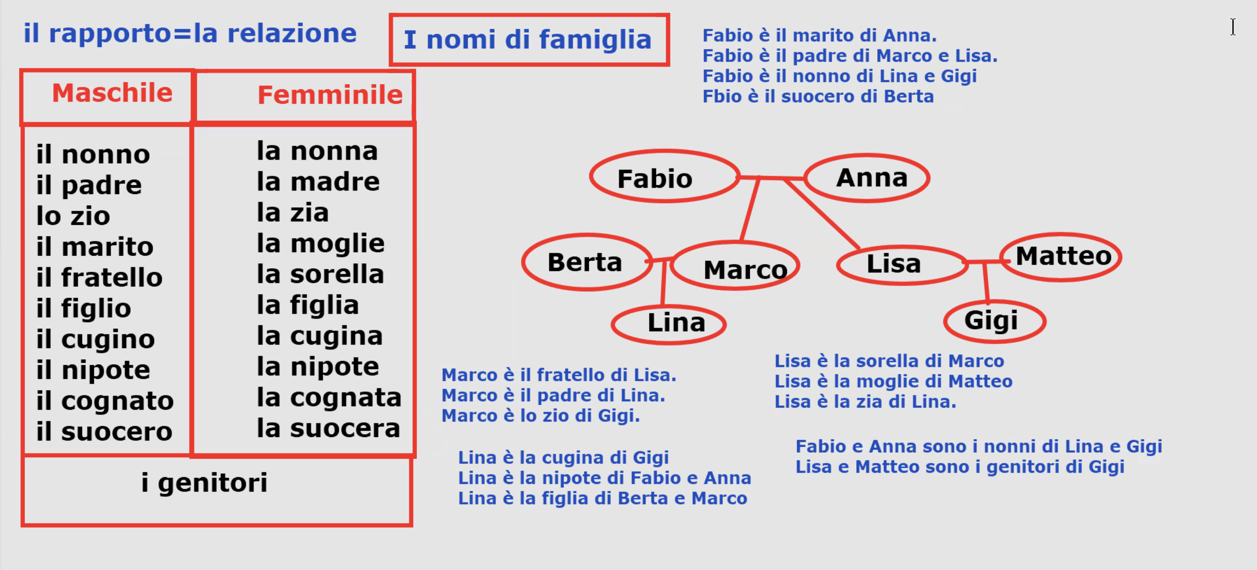 | il fratello | the brother | la sorella | the sister |
