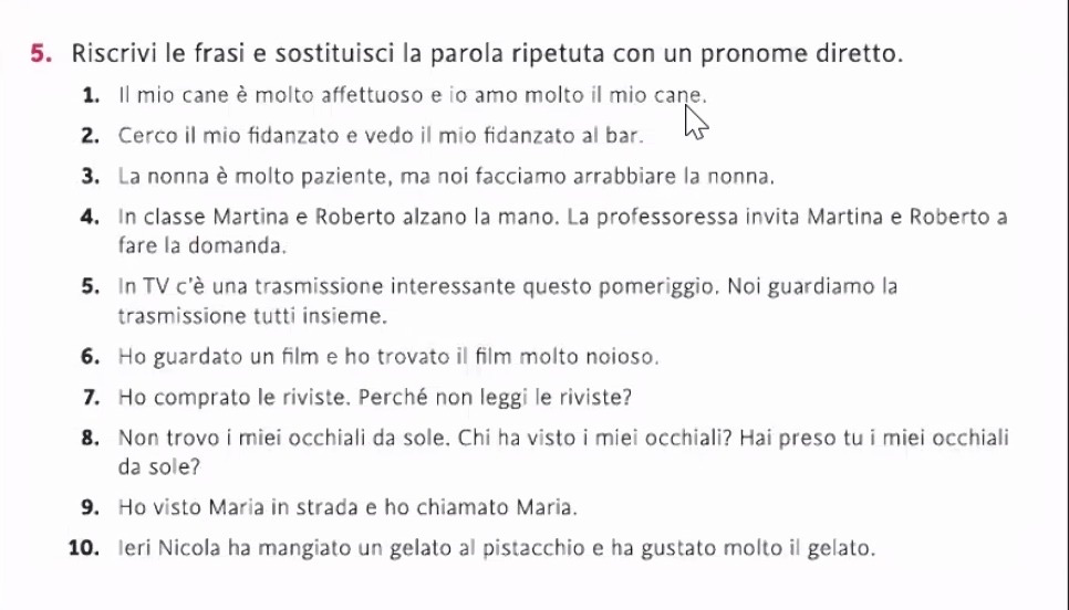 Ecco le frasi riscritte sostituendo la parola ripetuta con un pronome diretto: