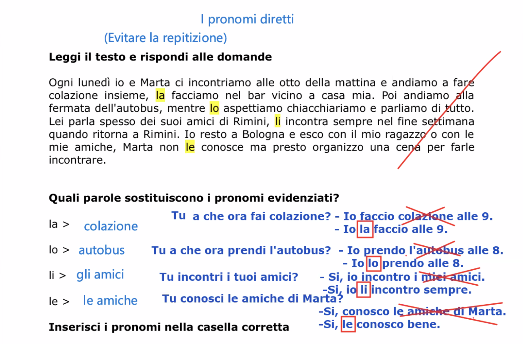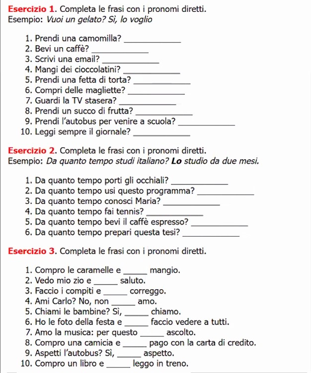 Esercizio 3. Completa le frasi con i pronomi diretti.