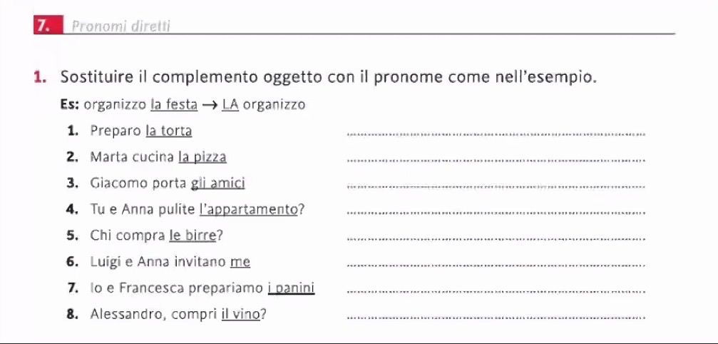 Esercizio 1. Completa le frasi con i pronomi diretti.