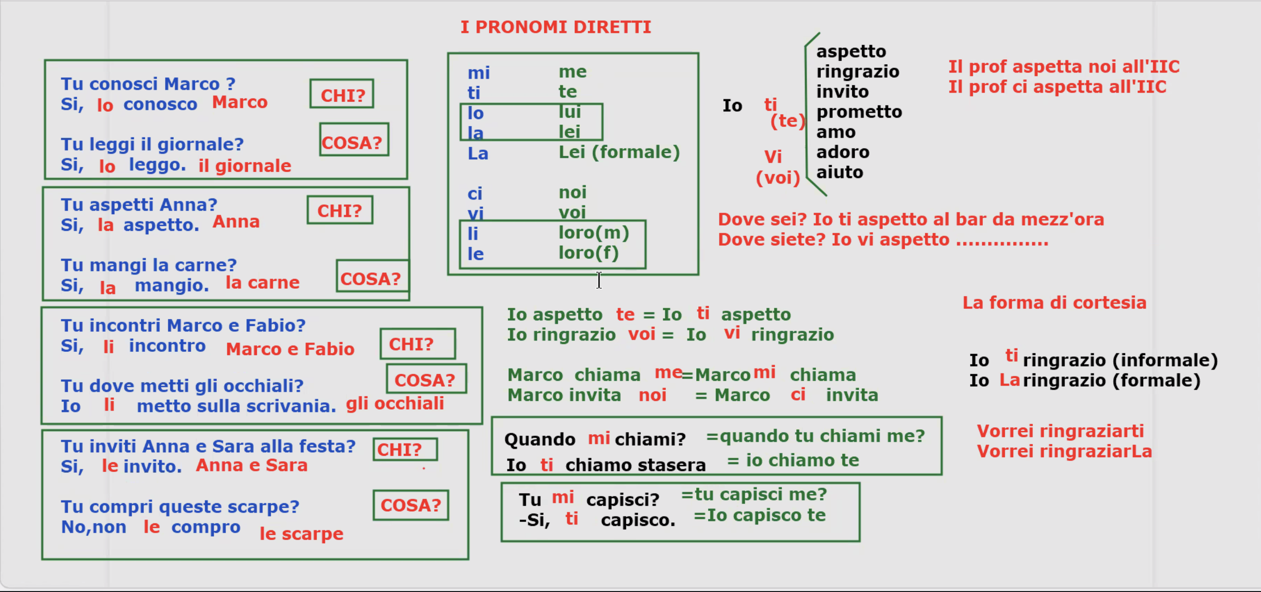 I pronomi diretti