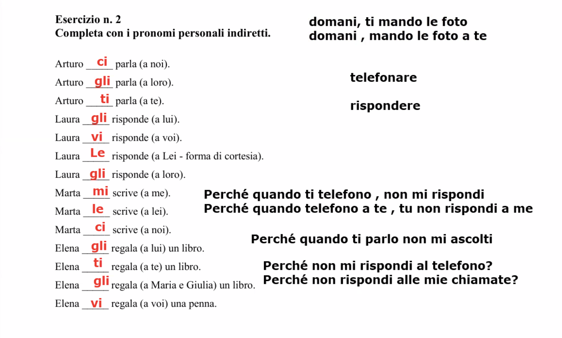 Esercizio 2. Completa le frasi con i pronomi diretti.