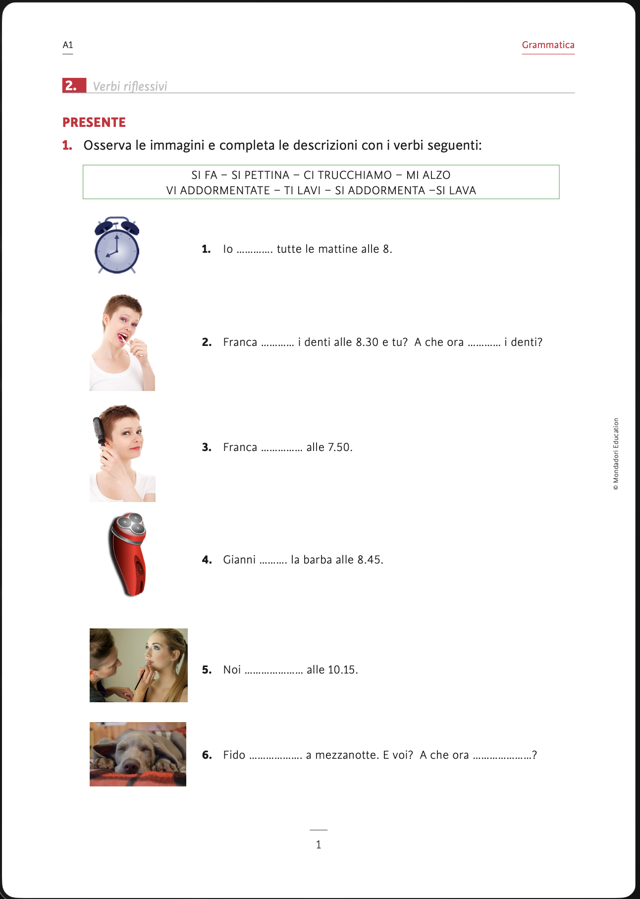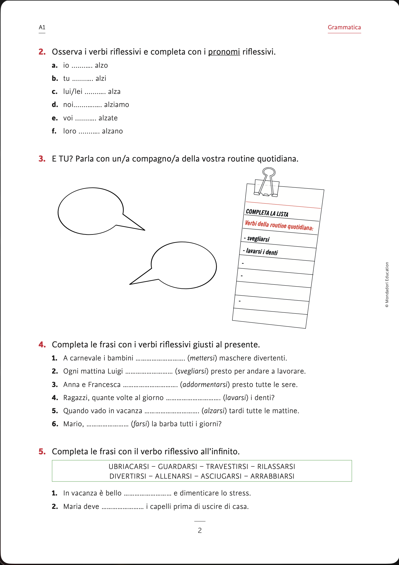2. Osserva i verbi riflessivi e completa con i pronomi riflessivi.