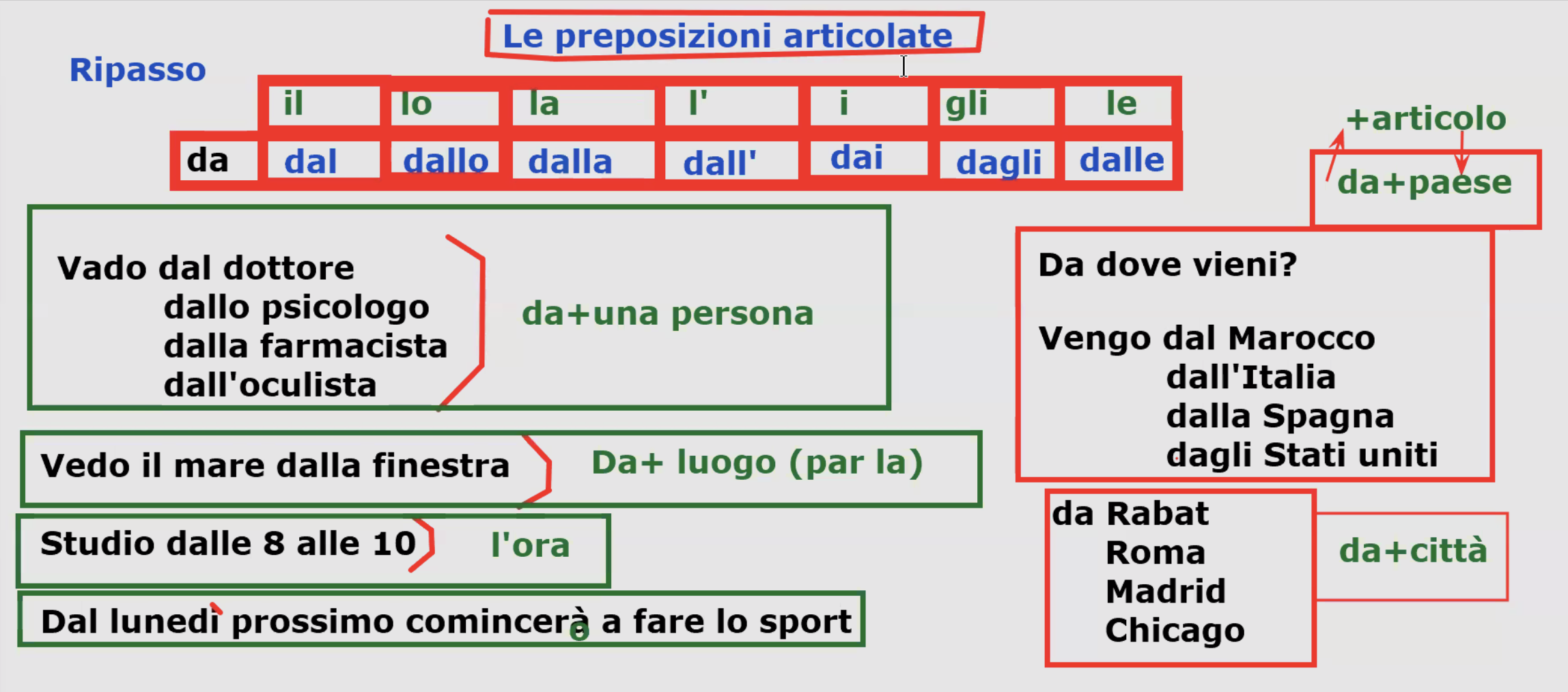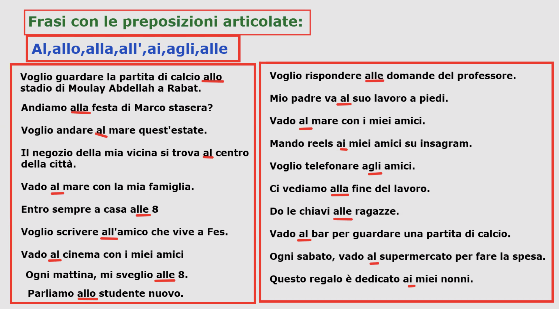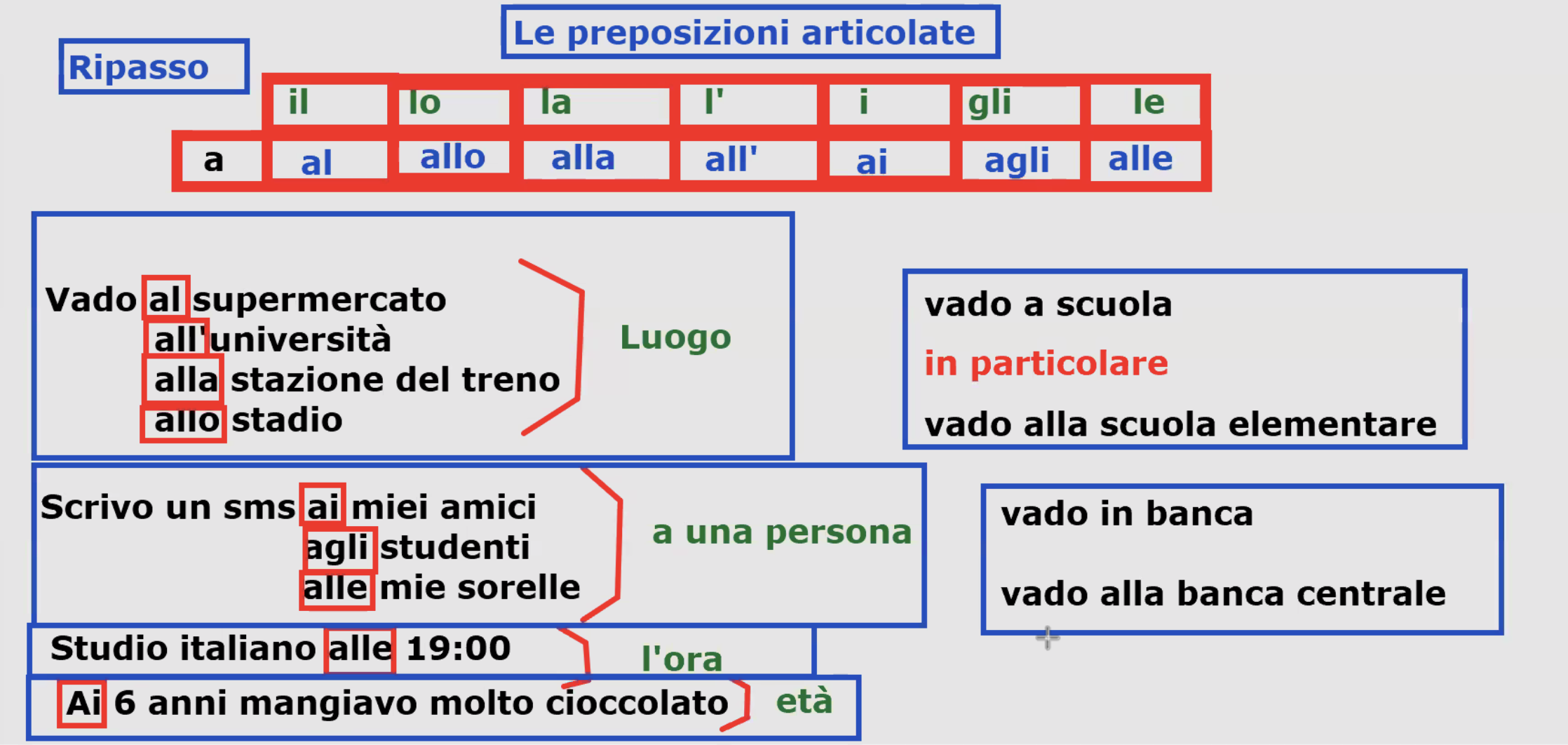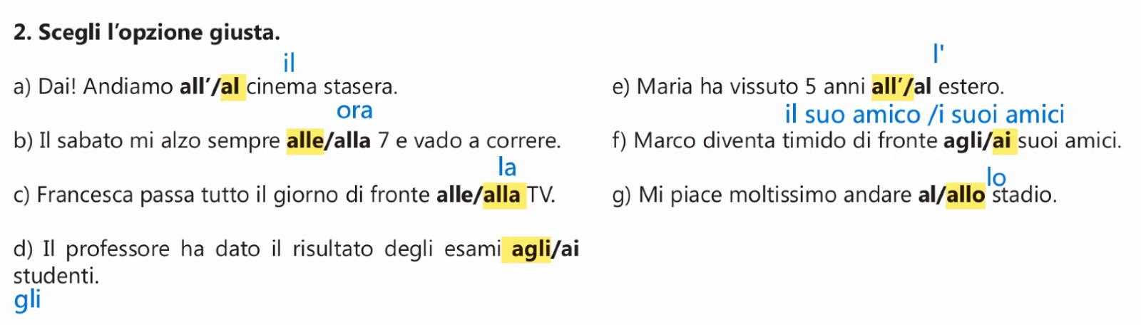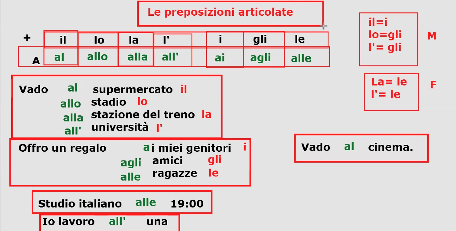 | a | al | allo | alla | ai | agli | alle |