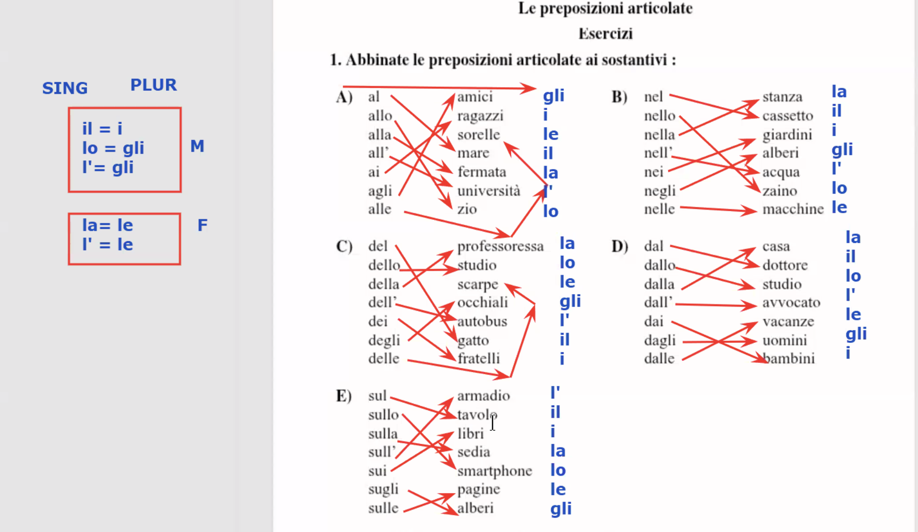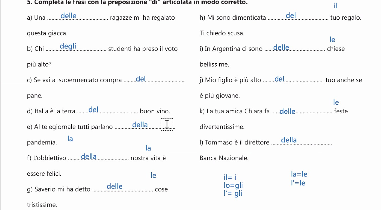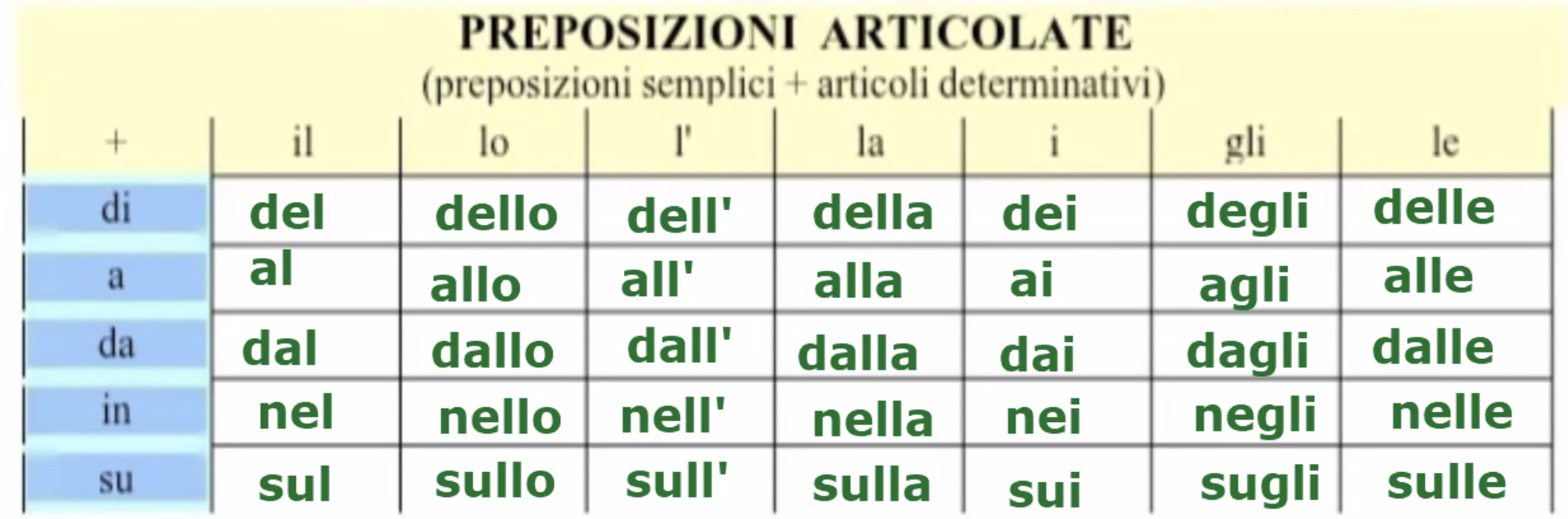 | Prep | il | lo | la | i | gli | le |
