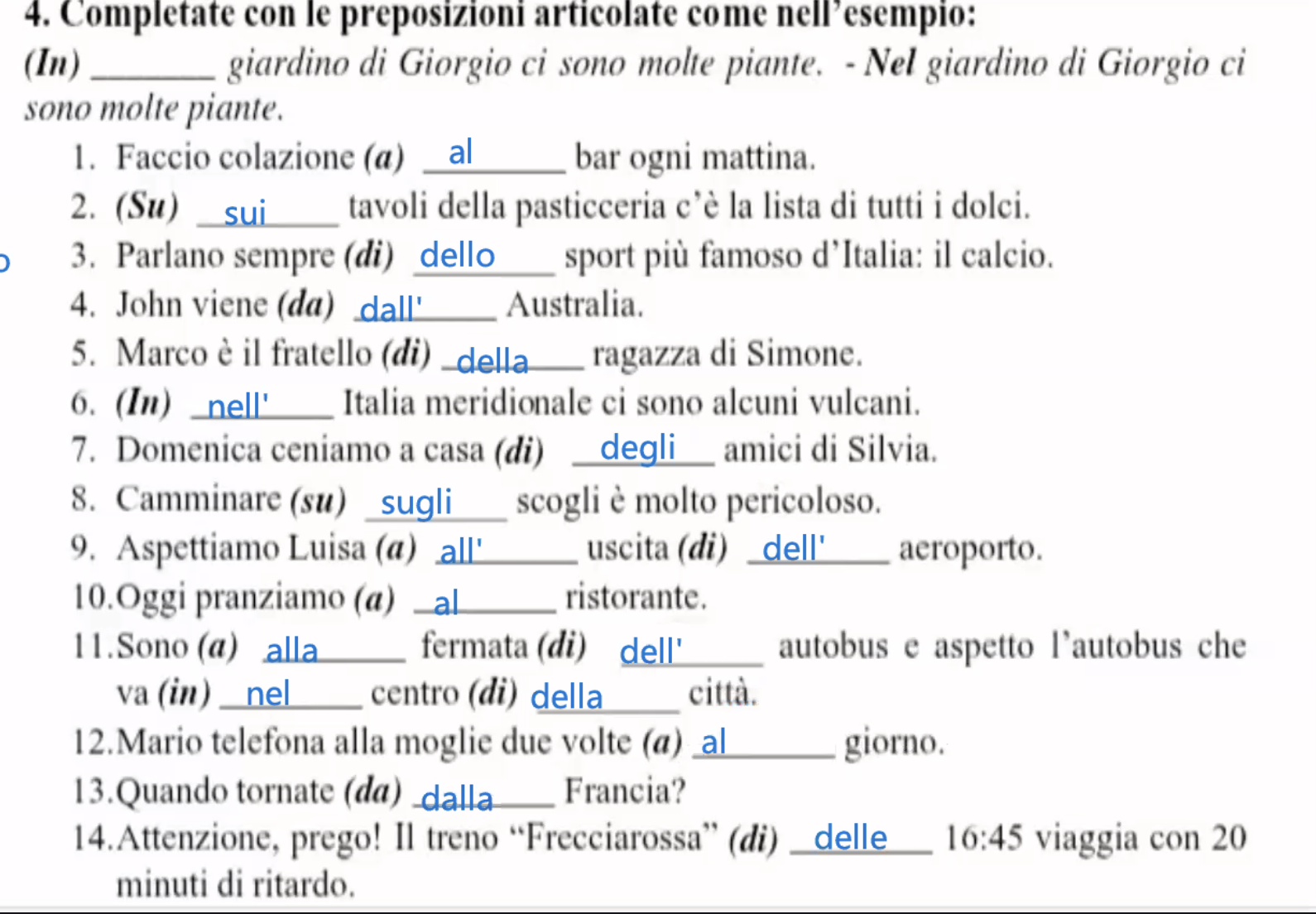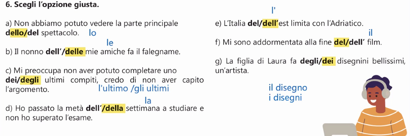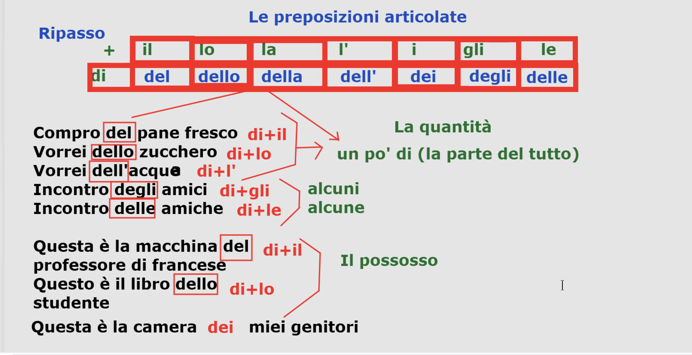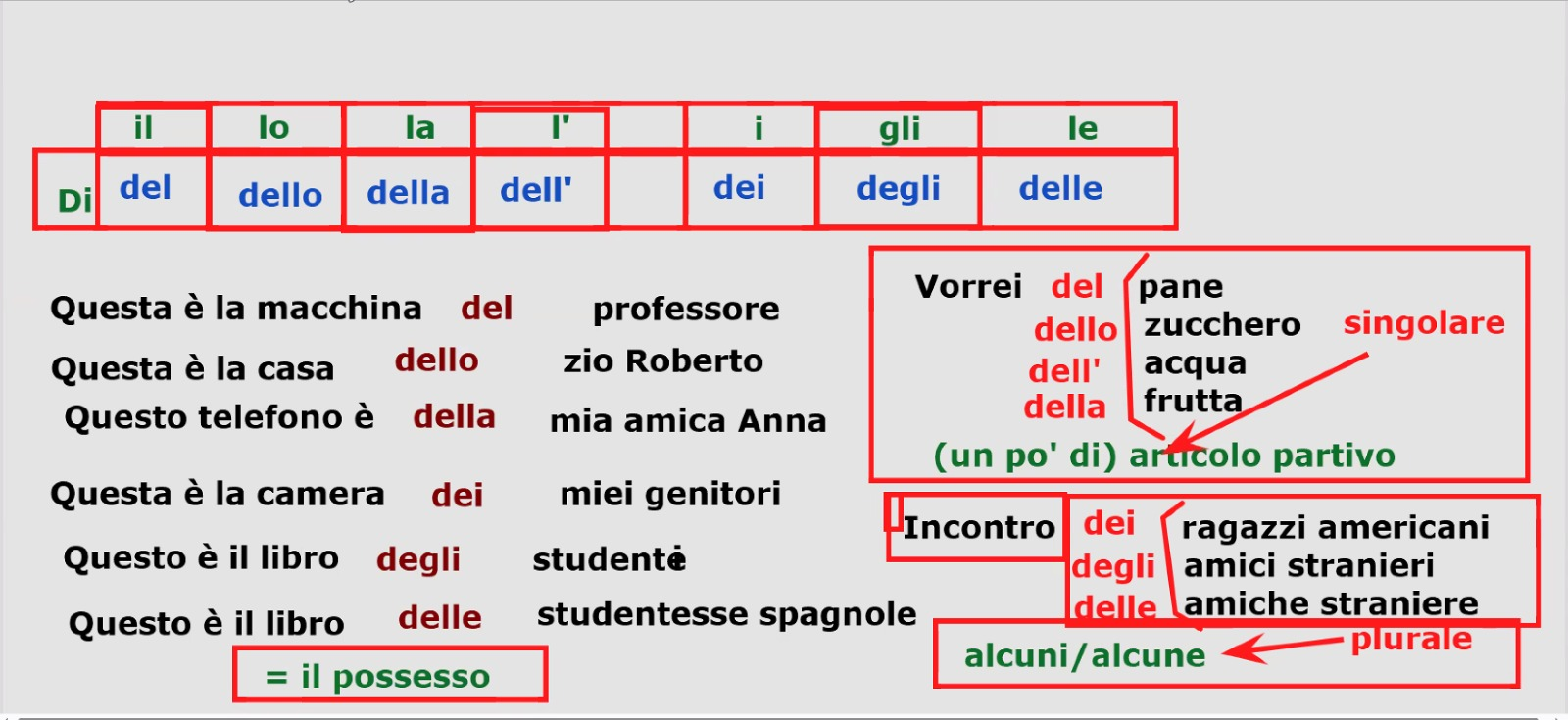 | Prep | il | lo | la | i | gli | le |