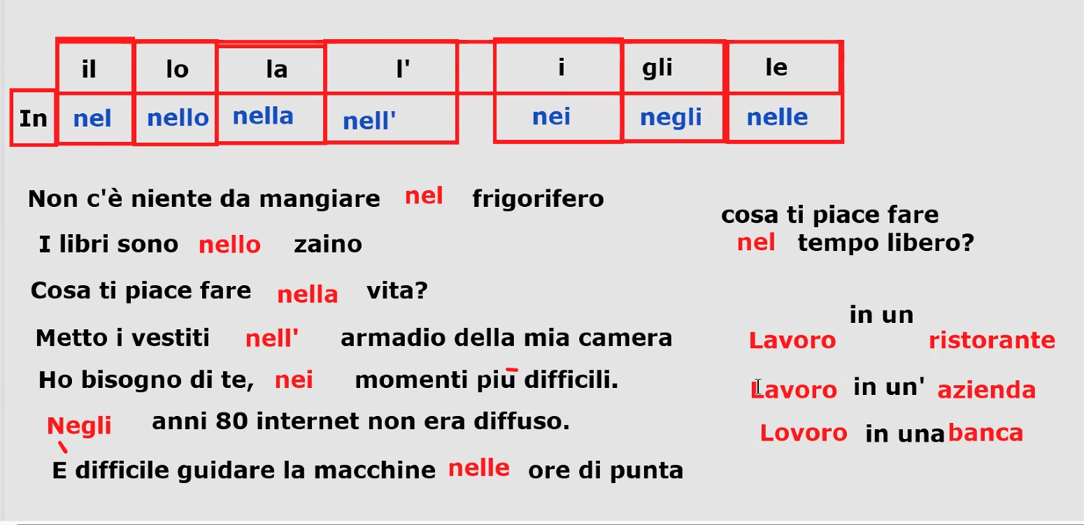 | in | nel | nello | nella | nei | negli | nelle |